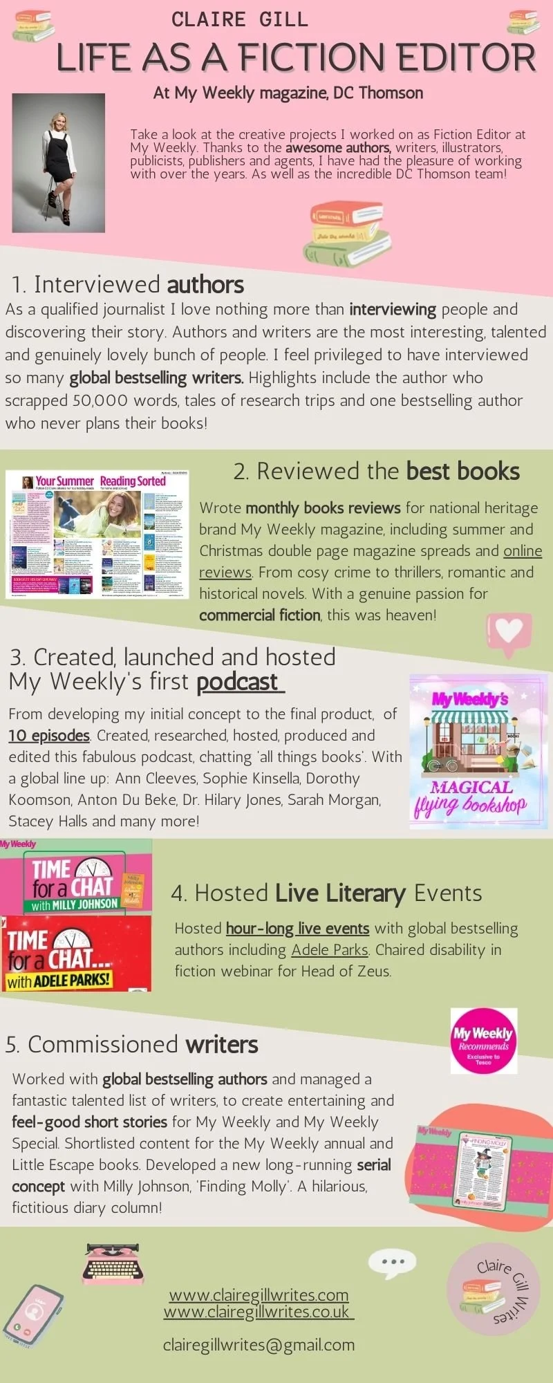 My time as Fiction Editor at My Weekly, was packed with cross-platform endorsements and a book industry that welcomed me with open arms.